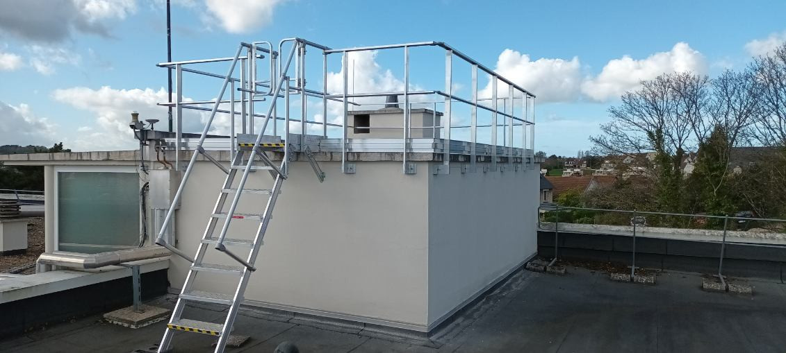 L'Echelle Européenne de Caen (14) a fabriqué et posé des garde-corps de toiture en aluminium.