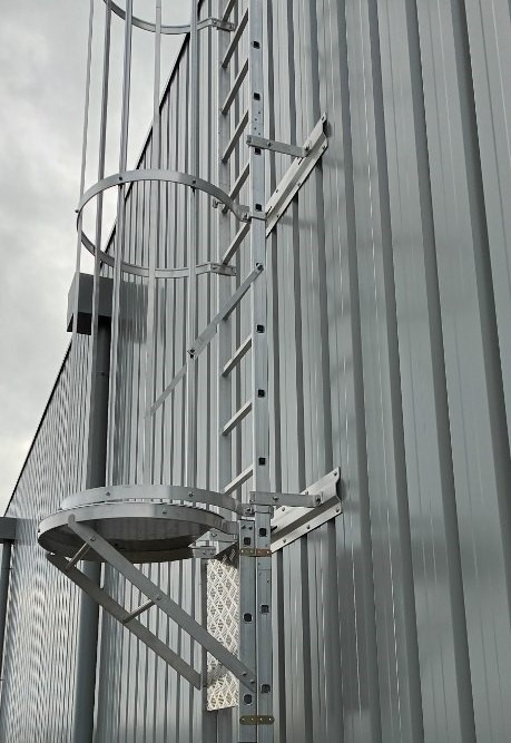Notre magasin L'Échelle Européenne de Caen a fourni et posé une échelle à crinoline en aluminium d'une hauteur à franchir de 6,70m, et à réaliser la pose sur bardage avec une demi porte de condamnation.