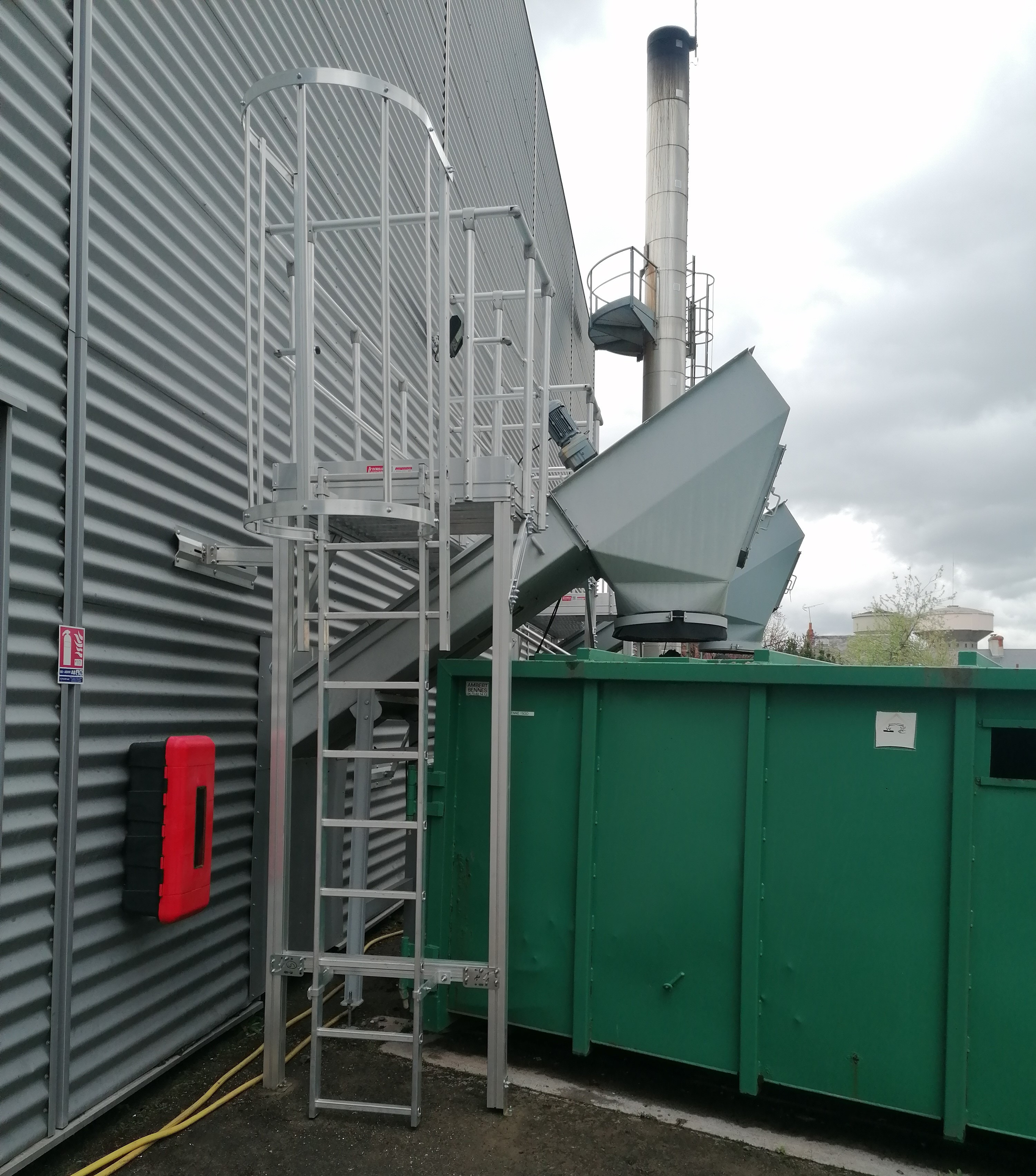 Élaboration d'une passerelle de maintenance à destination d'une chaufferie collective (fonctionnant avec des copeaux de bois) afin d'assurer la maintenance des moteurs électriques du convoyeur, lui qui ensuite envoie les déchets dans une benne ?