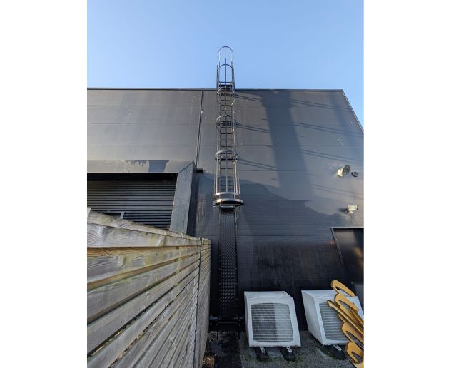 La solution installée appartient à la gamme Échelle à crinoline, un équipement incontournable dès lors qu’un accès vertical doit être utilisé régulièrement, avec une exigence élevée de sécurité.