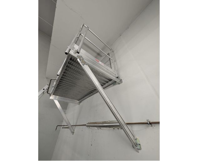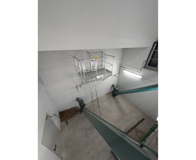 Pour garantir une intégration optimale au site, la plateforme a été conçue en tenant compte des contraintes d’implantation, de la hauteur d’accès, des flux de passage et des exigences de sécurité.