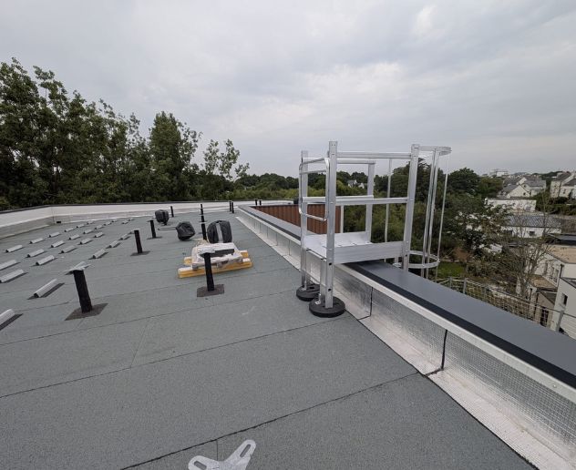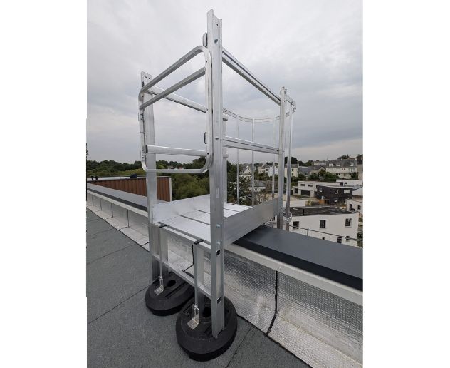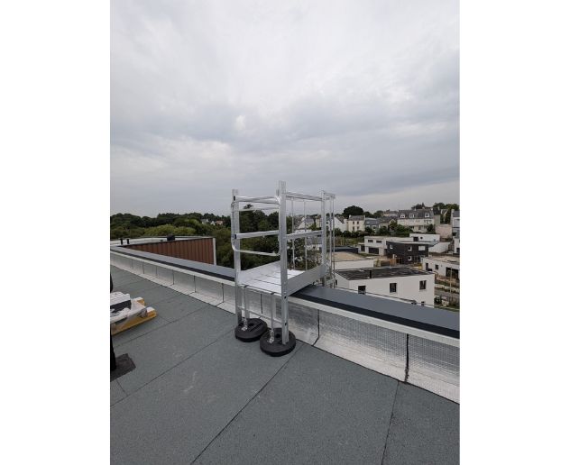 - Sortie en toiture avec portillon / garde-corps de franchissement pour sécuriser l’arrivée
