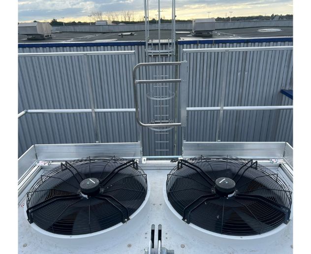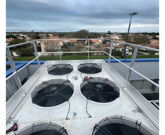 L’implantation a été réalisée sur mesure, afin d’épouser parfaitement la géométrie de la machinerie de toiture et de permettre des interventions de maintenance en toute sécurité, sans gêner le fonctionnement des équipements.
