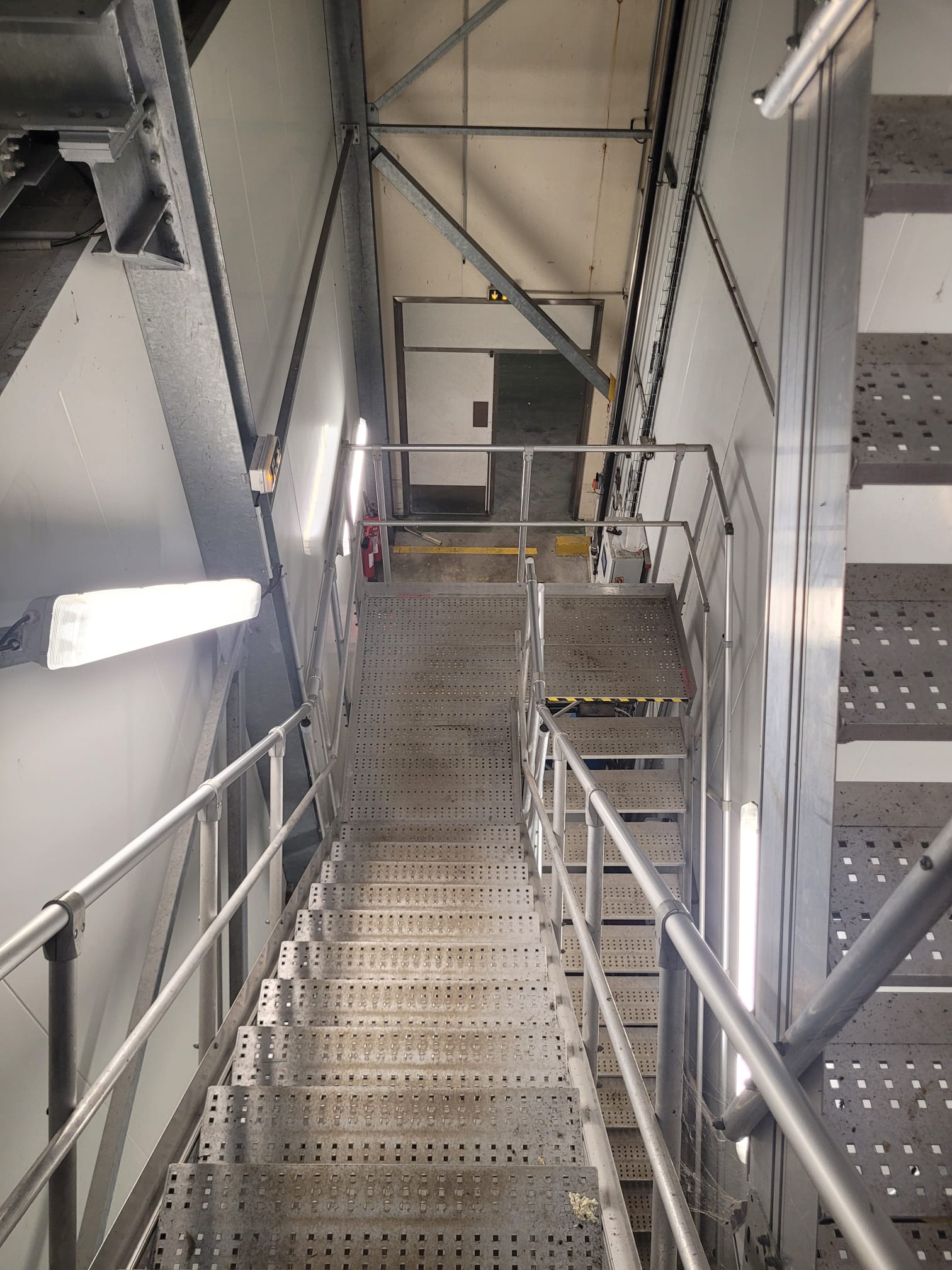 L’escalier installé appartient à la gamme Accès industriel Leevel, spécialement développée pour répondre aux exigences des sites industriels, logistiques et techniques.