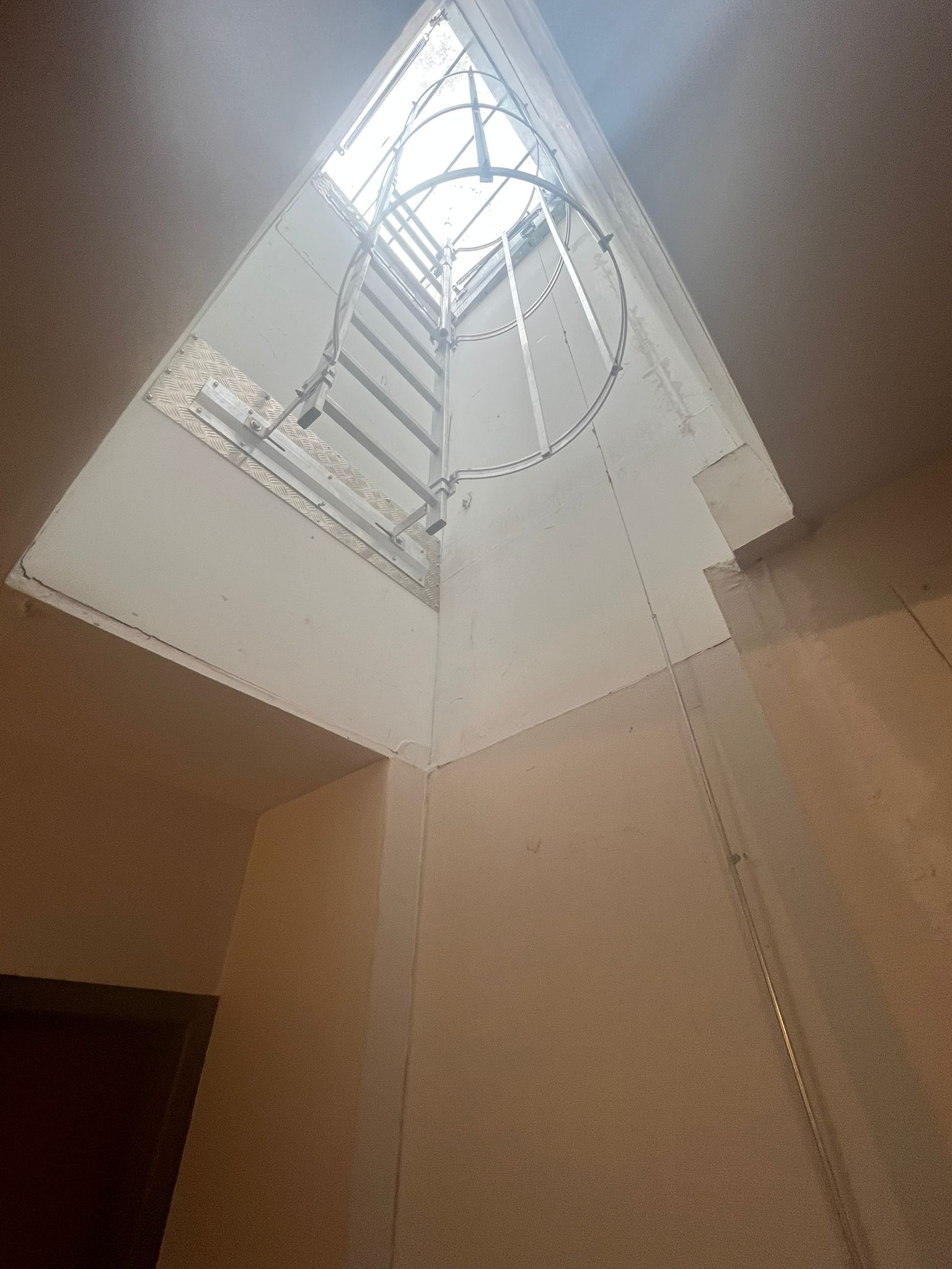 Le chantier portait sur la fourniture et la pose d’une échelle à crinoline Fixup, spécifiquement adaptée à une trémie très étroite. Ce type de configuration impose une conception précise afin de garantir à la fois la sécurité des utilisateurs et la conformité réglementaire.