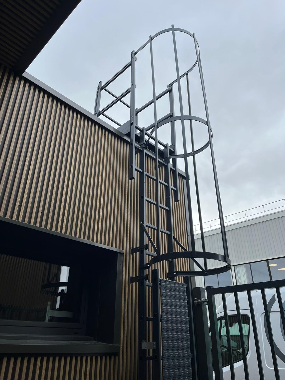 Cette réalisation s’inscrit dans la gamme Echelle à crinoline dédiée à la sécurisation des accès verticaux permanents vers les toitures industrielles.
