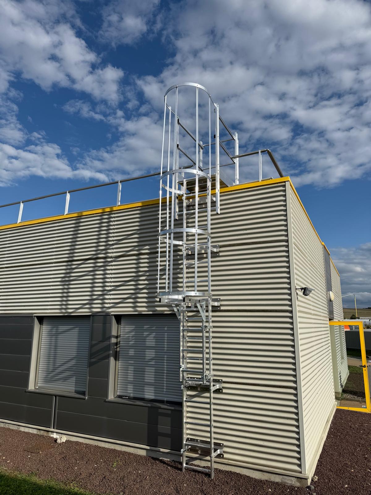 L’échelle à crinoline permet un accès permanent sécurisé à la toiture.