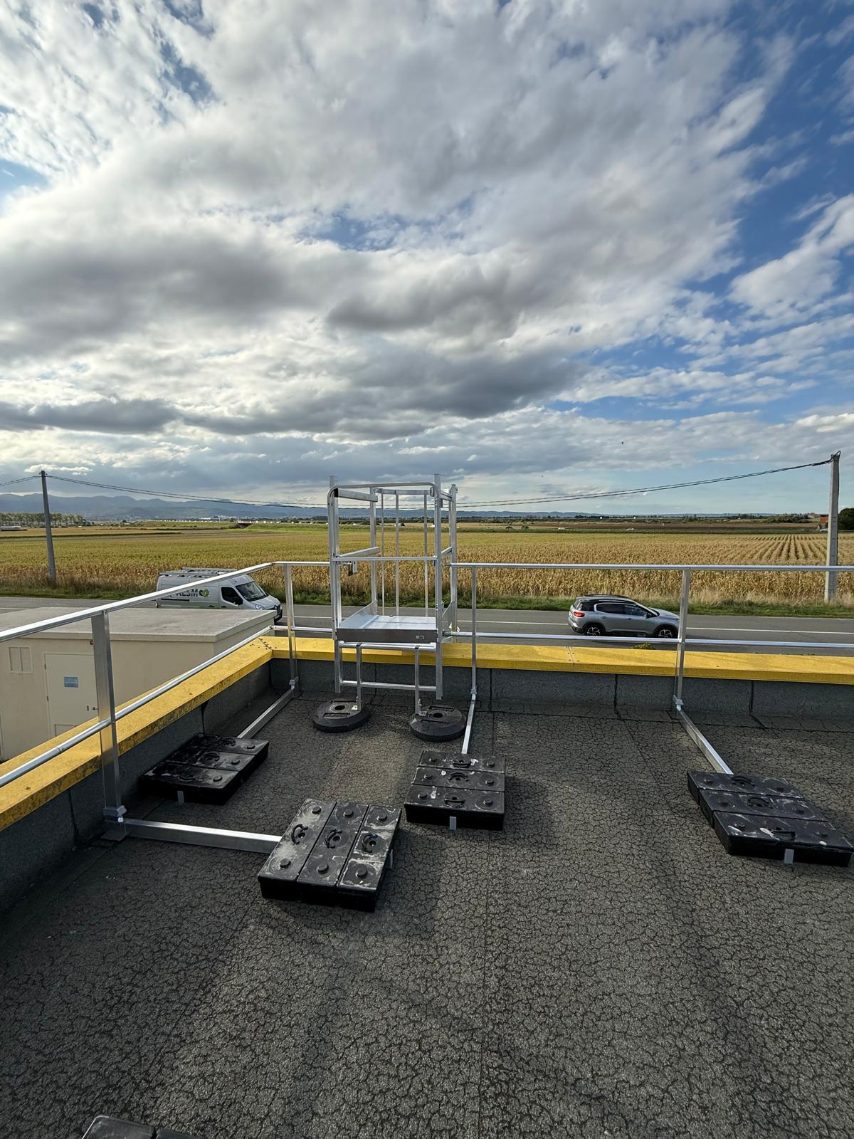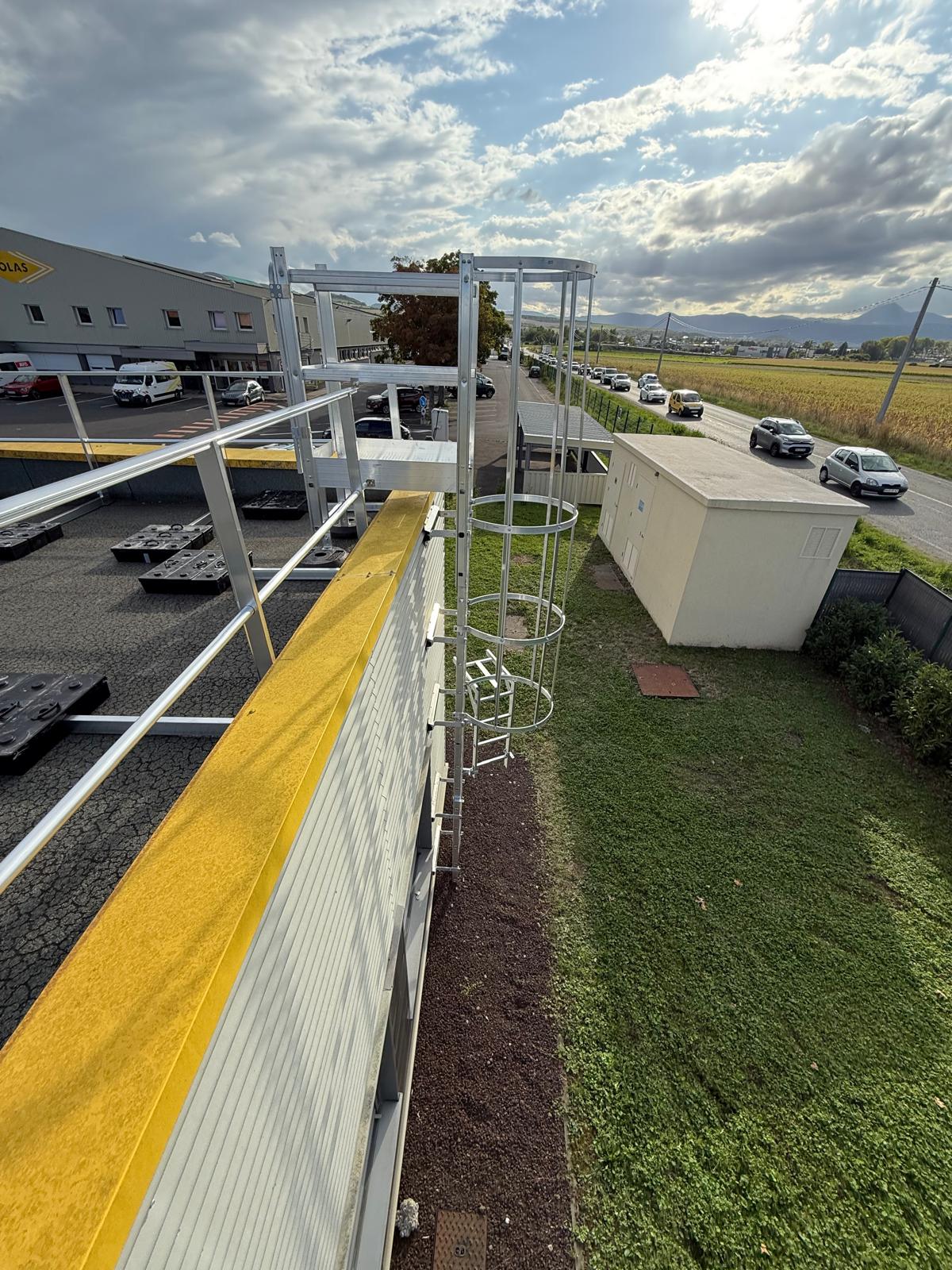 Ce chantier réalisé à Lyon Sud avait pour objectif de sécuriser l’accès au toit d’un bâtiment industriel et de protéger les zones de circulation en toiture.