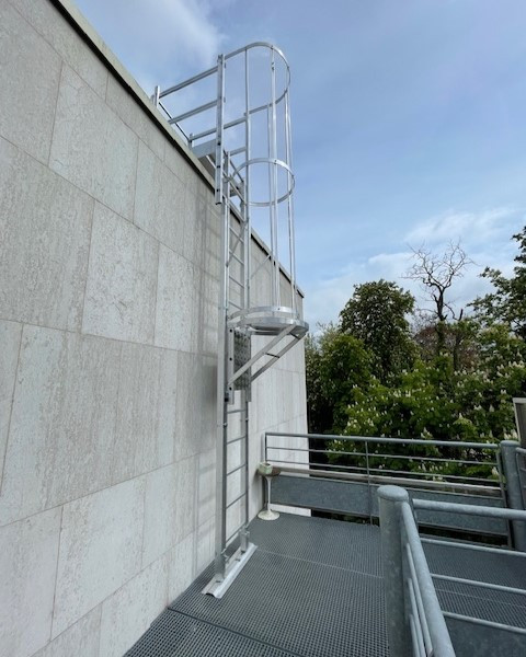 Le magasin de L'Echelle Européenne Caen a fourni et posé une échelle à crinoline en aluminium sur-mesure afin de garantir un accès sécurisé sur la toiture.