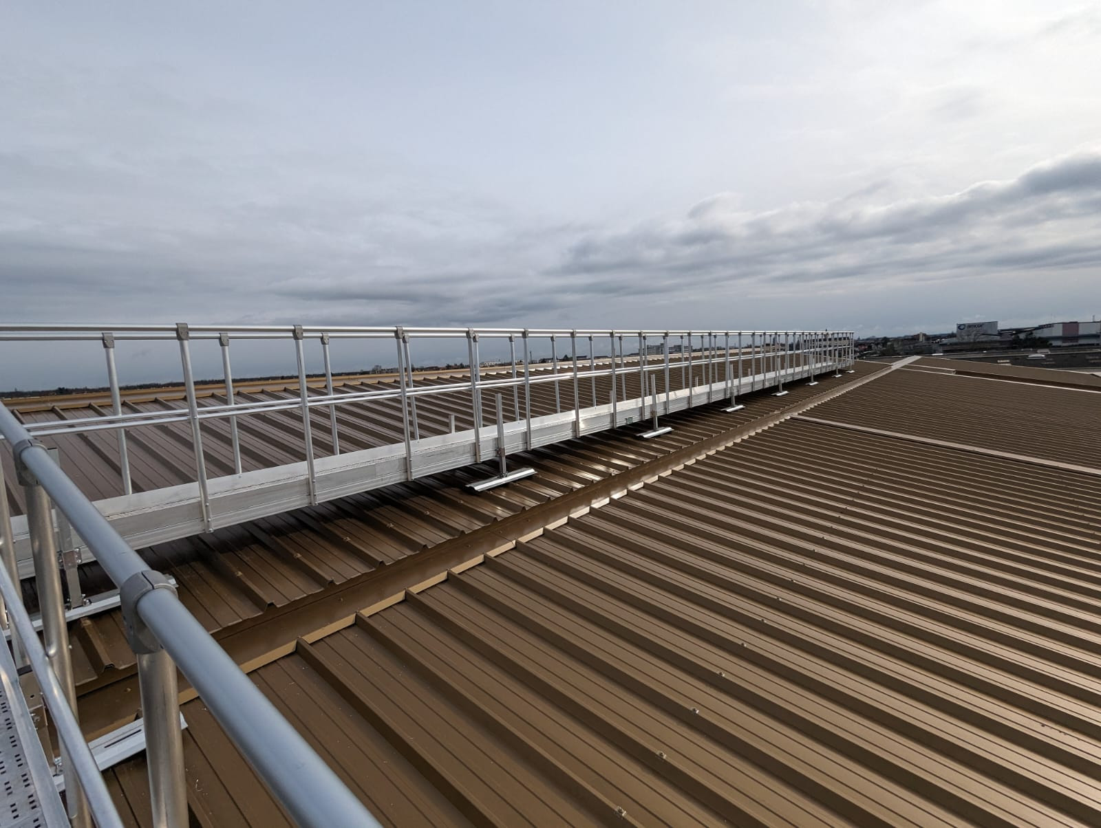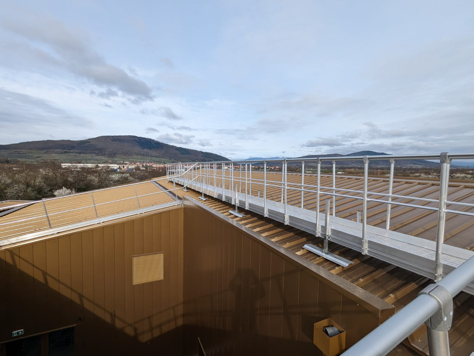 L'équipe a réalisé la pose de cette passerelle sur-mesure FASTWALK afin de sécuriser les déplacements des intervenants sur la toiture.