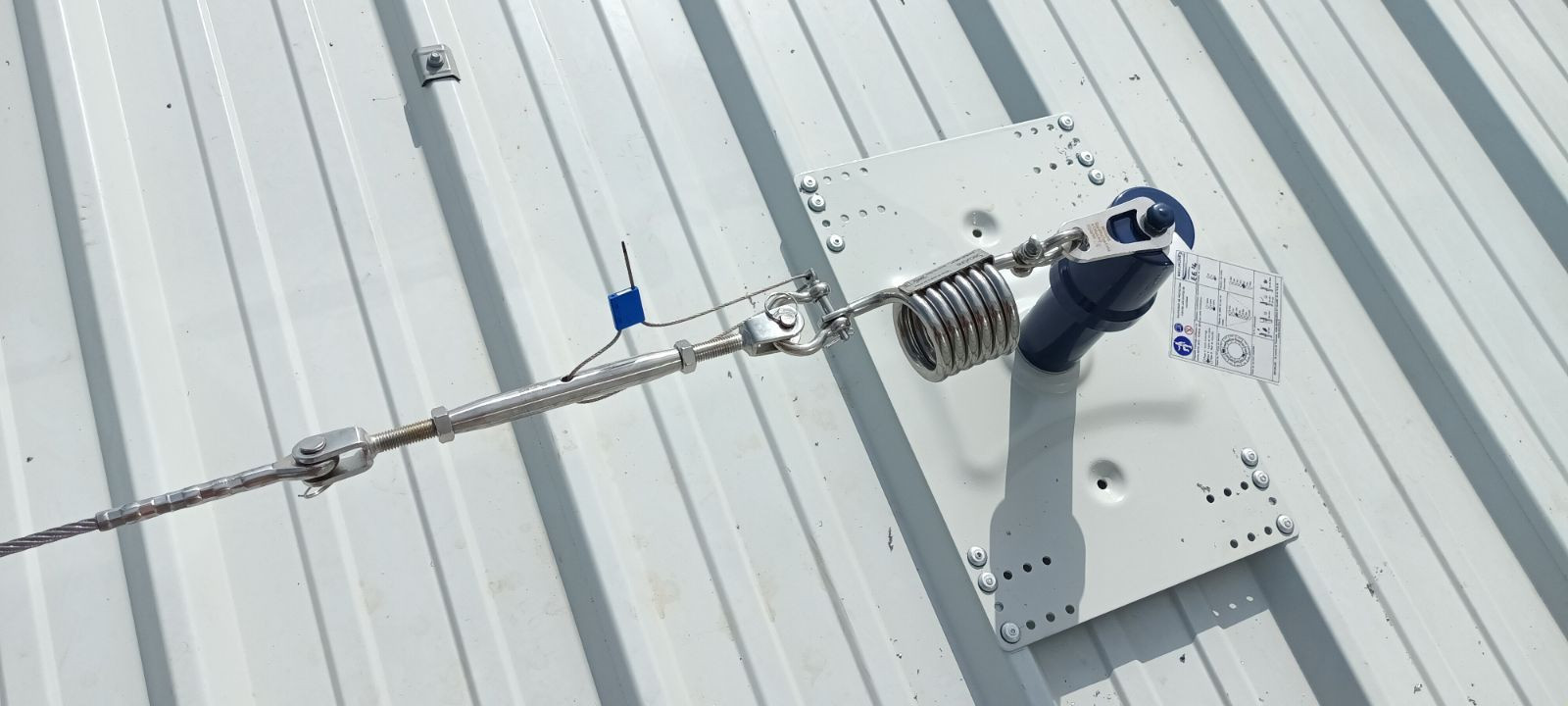 L'echelle Européenne de Caen (14) vient d'effectuer la pose de 2 lignes de vie sur un bac acier afin de sécurisation le personnel technique au moment de l'entretien de la toiture et des cheneaux.