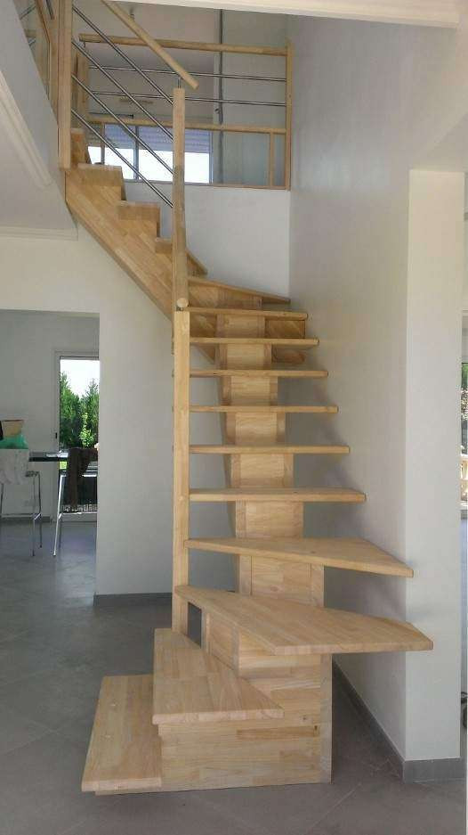 Voir le contenu - Pose d'un escalier en bois double quart tournant avec Limon central par L'Echelle Européenne Nantes