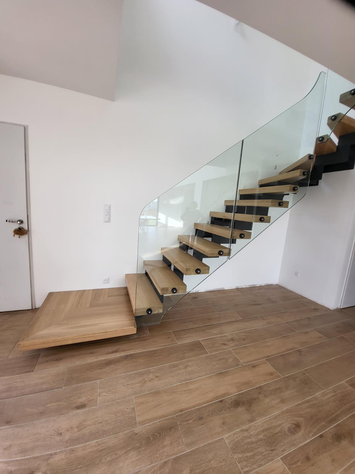 Notre équipe a réalisé un chantier de fabrication et pose d’un escalier à crémaillère déportée dans le département du Calvados (14), en région Normandie. Ce modèle est particulièrement apprécié pour son design moderne et sa sensation de légèreté.
