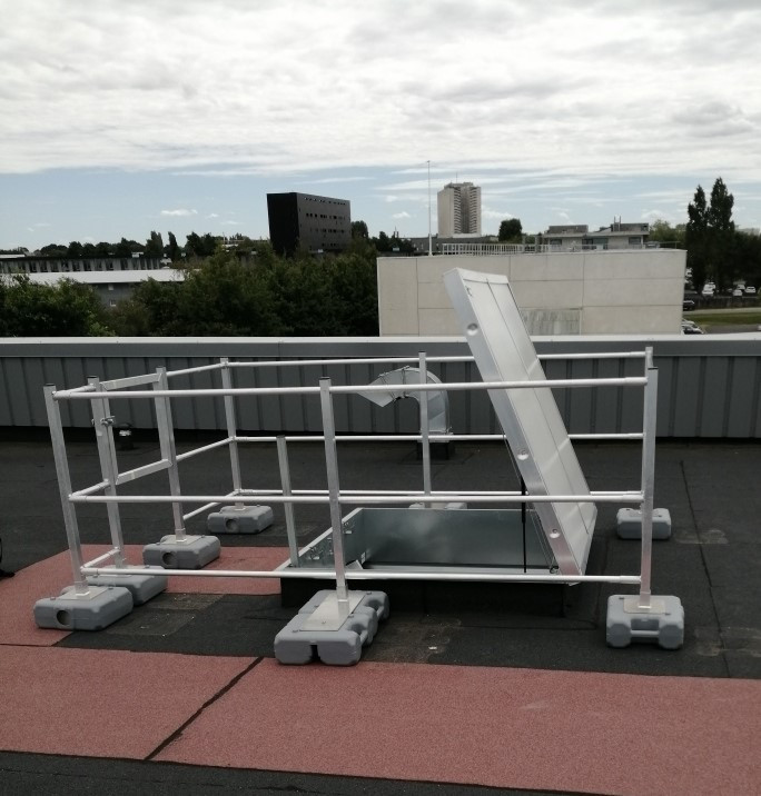 L'Echelle Européenne de Caen (14) a fabriqué et posé des garde-corps de toiture en aluminium.
