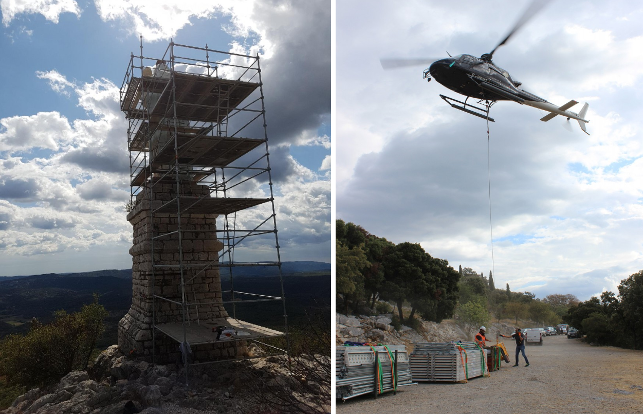 Le magasin de Montpellier a participé au beau projet de restauration de Notre-Dame-du-Suc en faisant acheminer un échafaudage fixe, au total 4 tonnes de matériel, à 500 mètres de hauteur à l’aide d’un hélicoptère fourni et piloté par Heliteam sur la commune de Brissac.